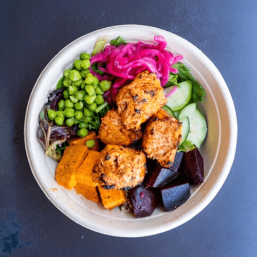Chickpea fritters, tomatoes, pickles, and tahini (sesame paste) in pita bread. Served with your choice of side.