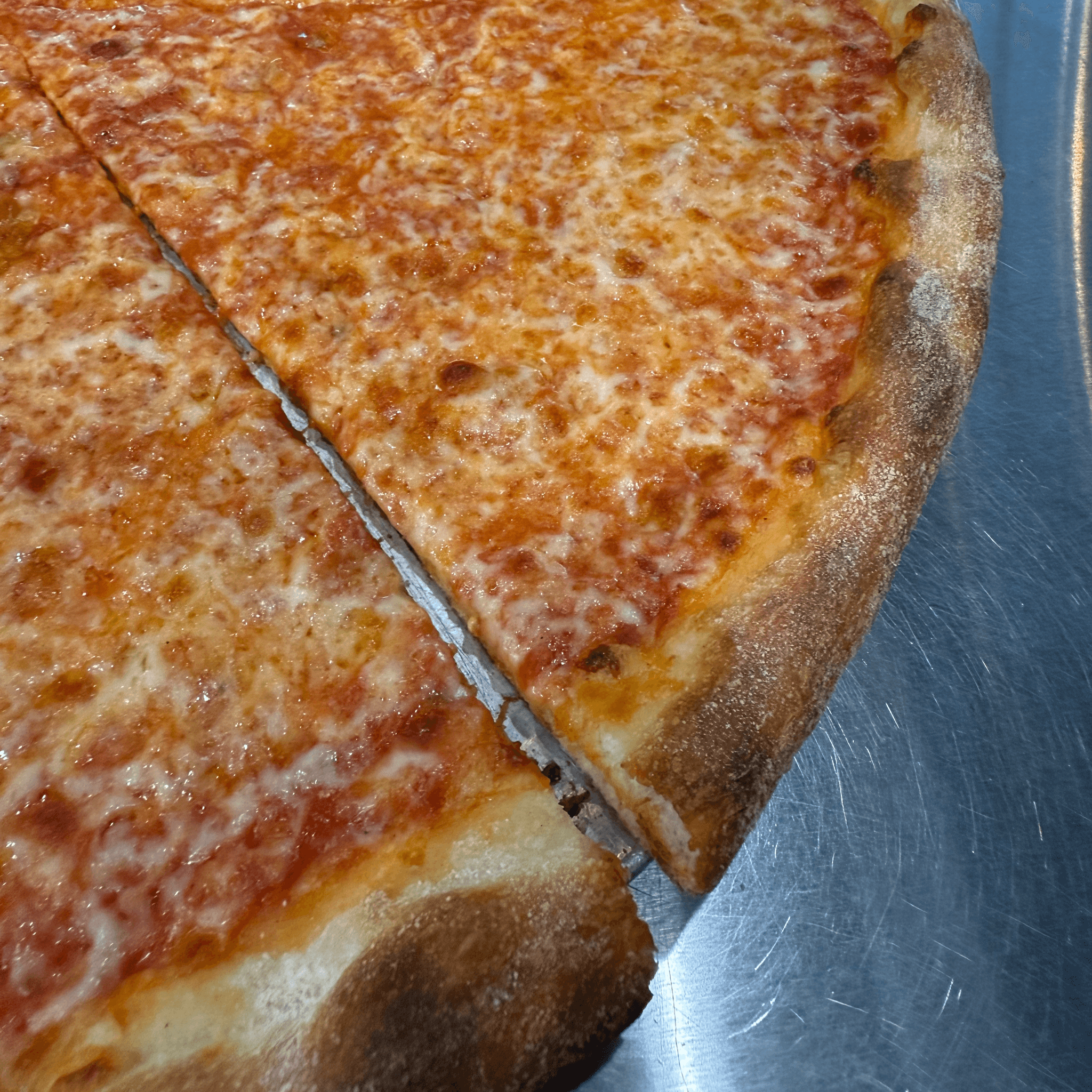 Your standard large-round NY pie with hand‑stretched crust, tangy red sauce, gooey mozzarella—simple, foldable, flavorful.